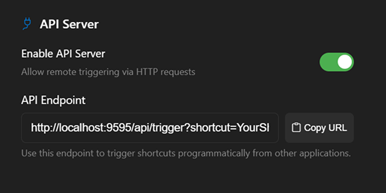 Trigger shortcuts remotely from external platforms like Stream Deck, mobile, and webhooks.