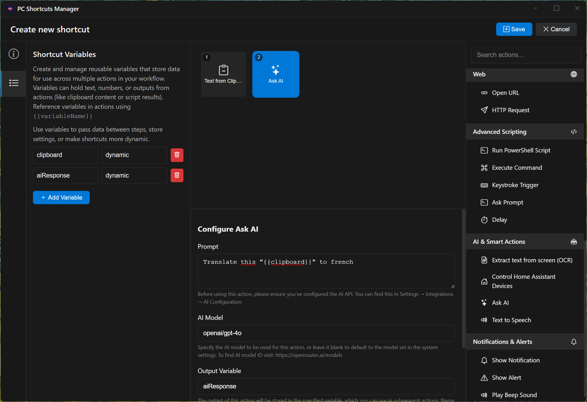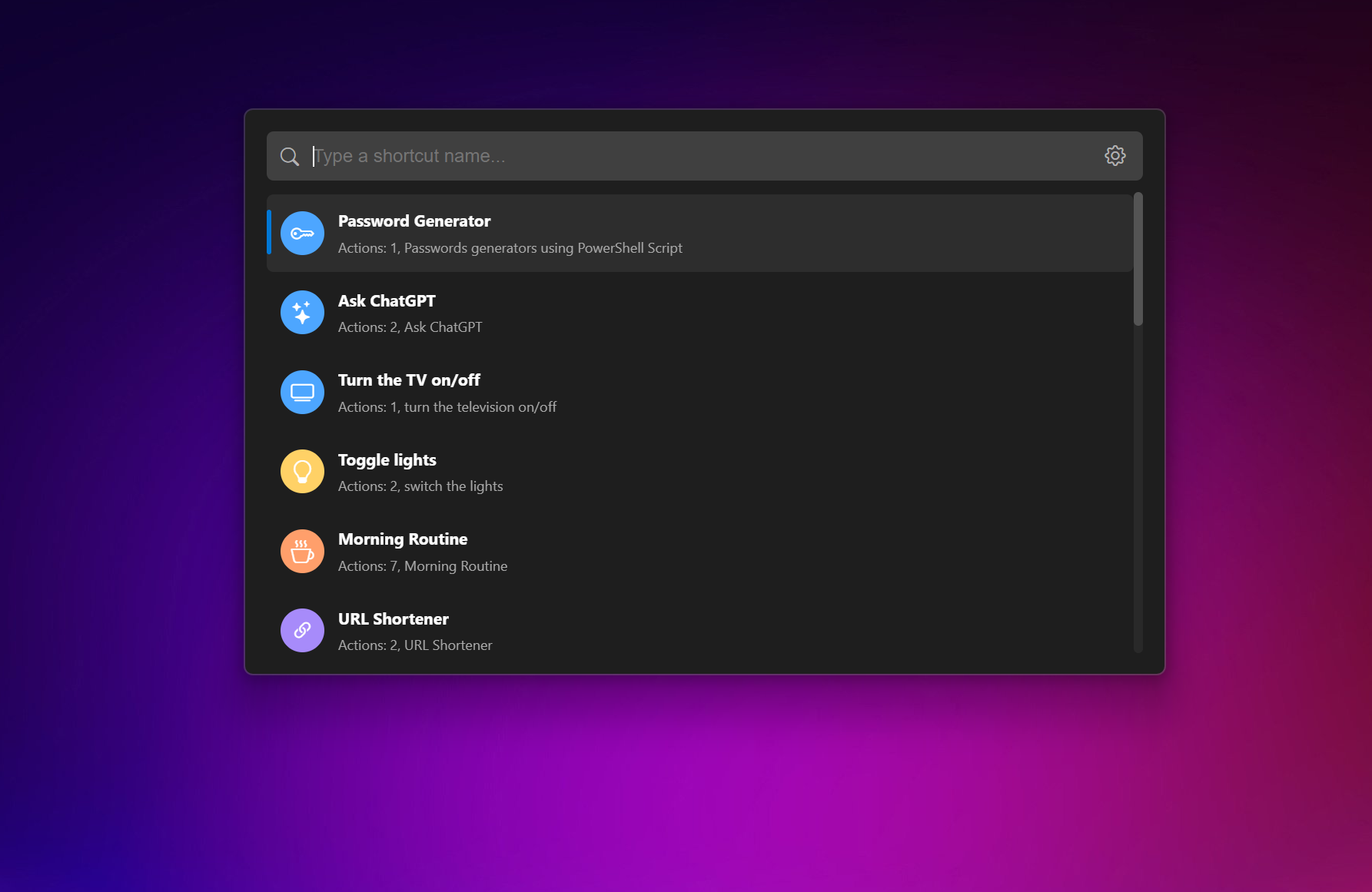 Over 35 built-in actions designed for effortless shortcut creation. Easily configure and customize them to streamline your workflow with minimal setup. Browse all actions
